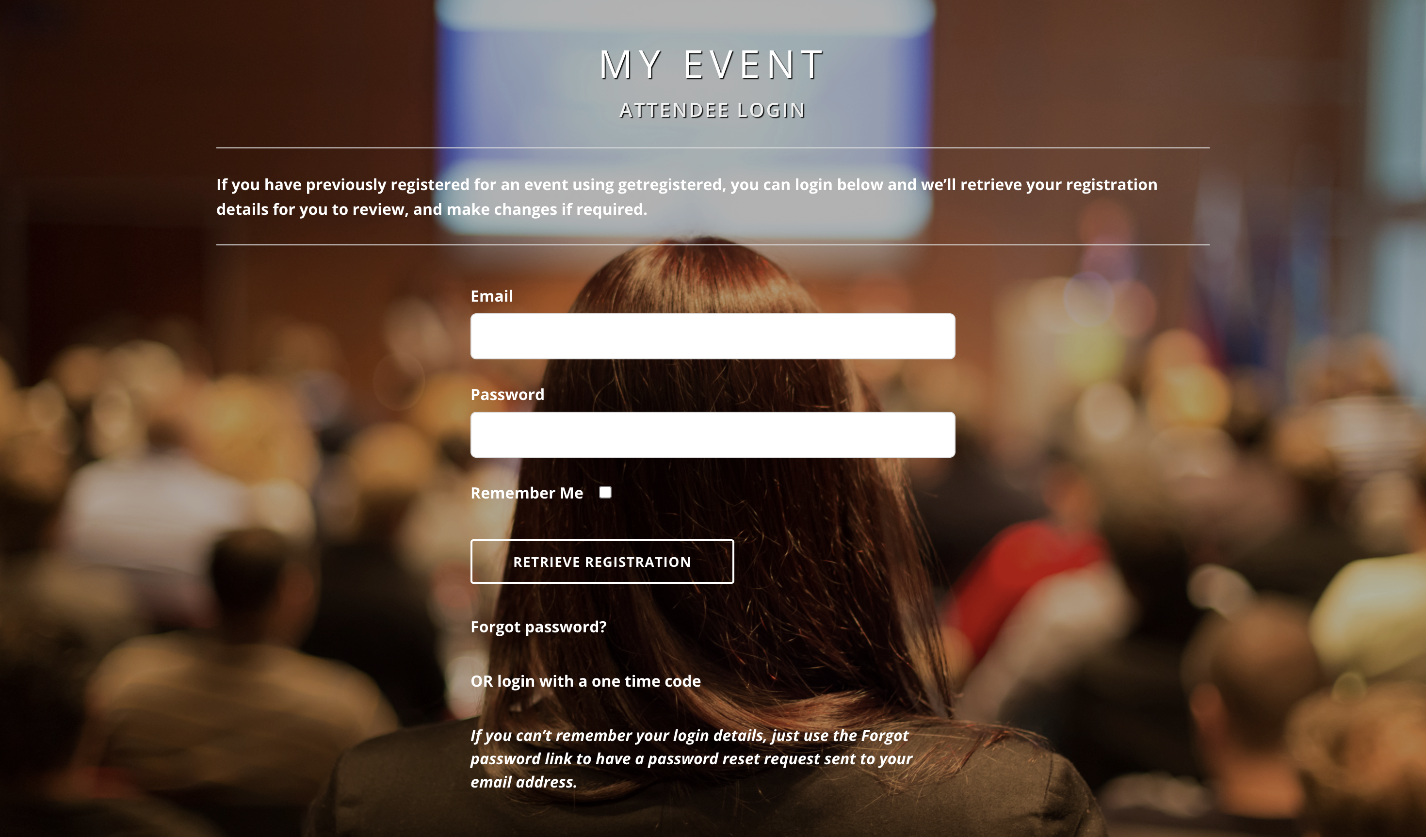You can access your registration in your event site by clicking on the 'Already Registered?' option at the top right of the page and logging in.