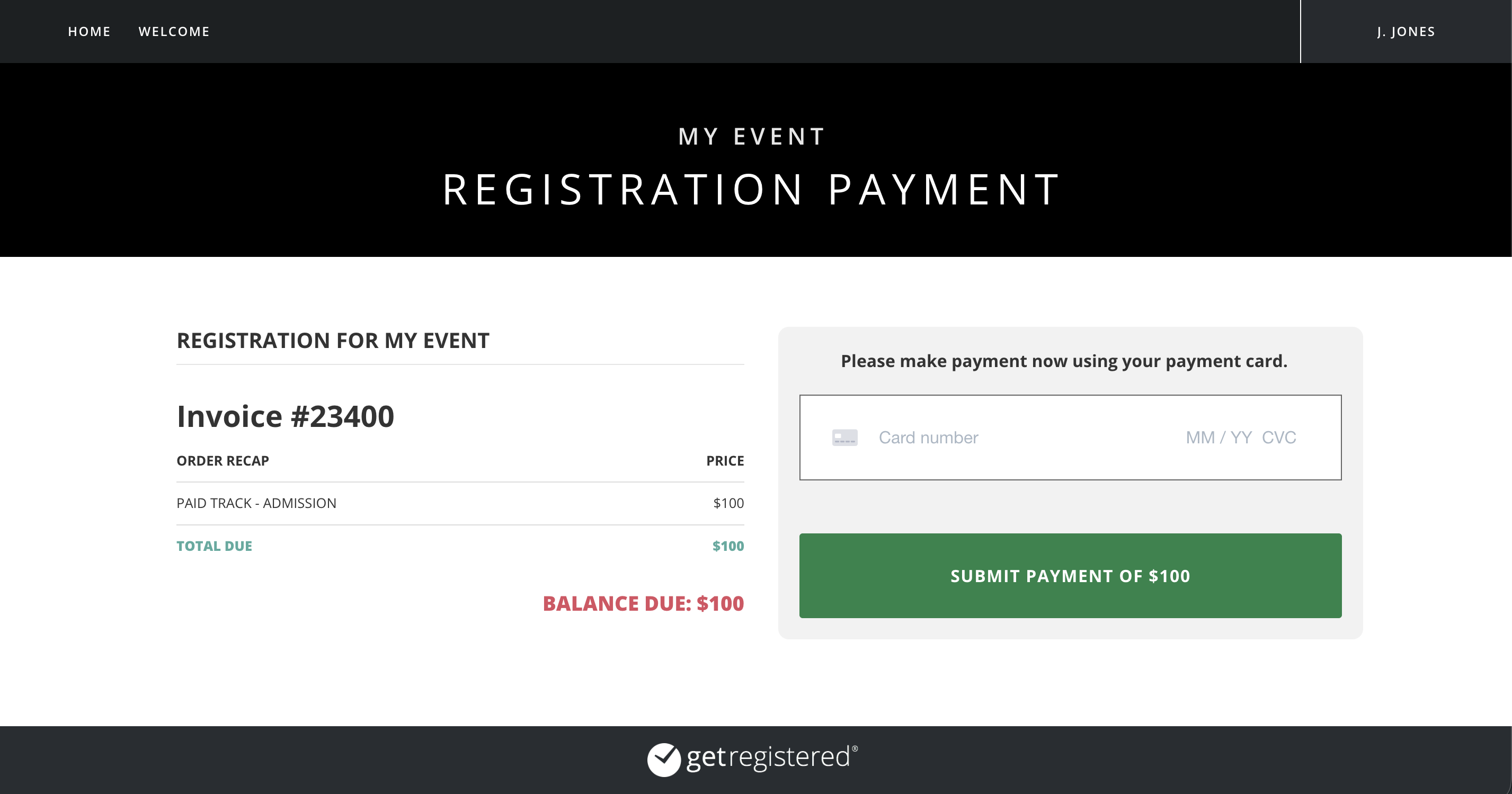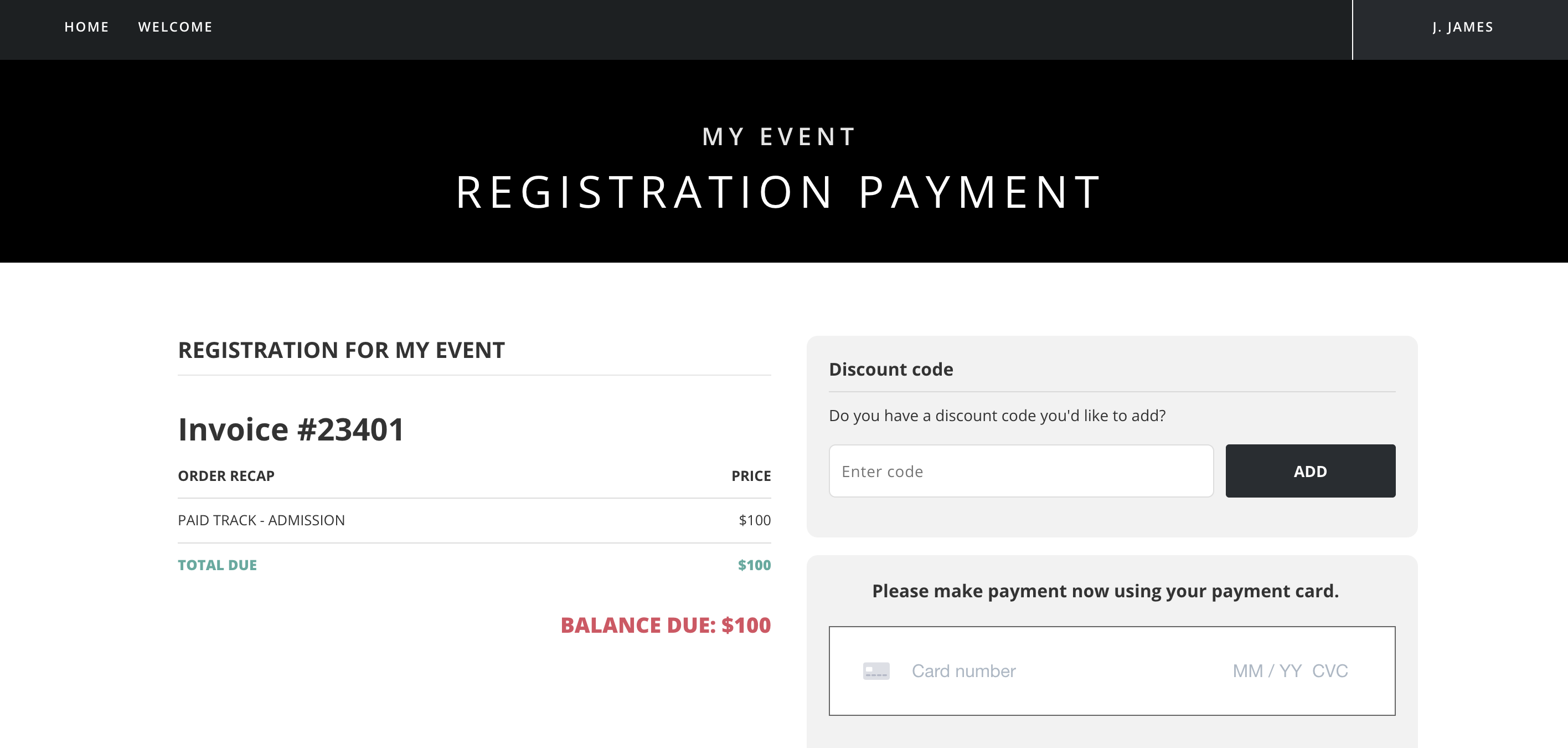 If the event you are registering for accepts online payments, when you confirm your registration, you will be taken to the 'checkout' page to complete your registration.